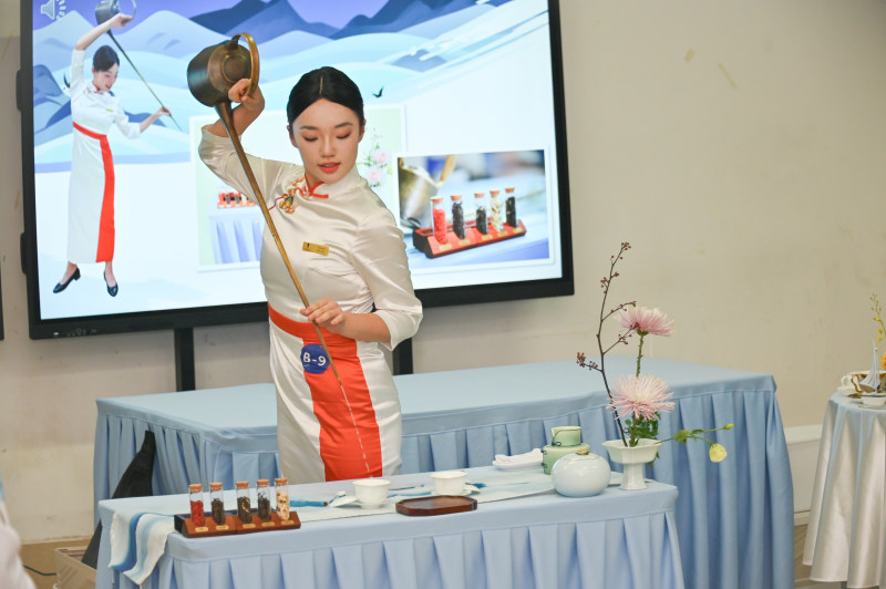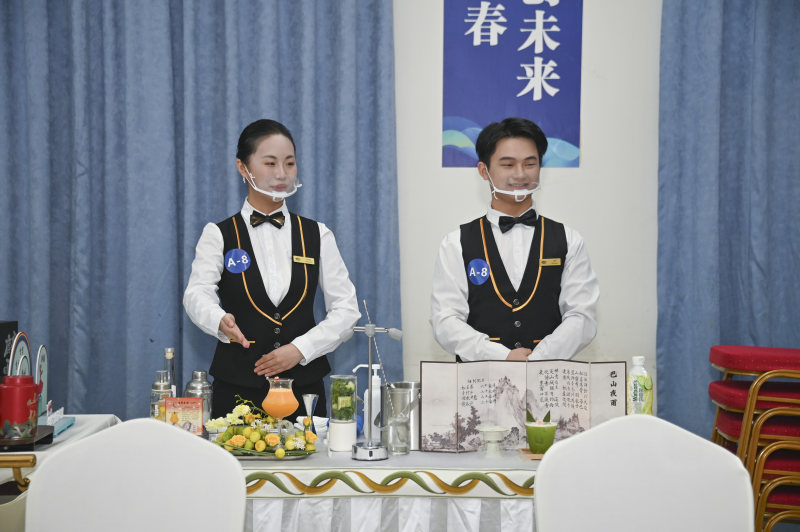 比赛中,各参赛队伍表现出良好的精神风貌与扎实的专业功底。选手们在一小时的赛程内,依据“三自主”原则设计并完成工作任务,在模拟真实情境中展现了熟练的技能与灵活的应变能力,充分彰显了酒店行业从业者的专业风采。