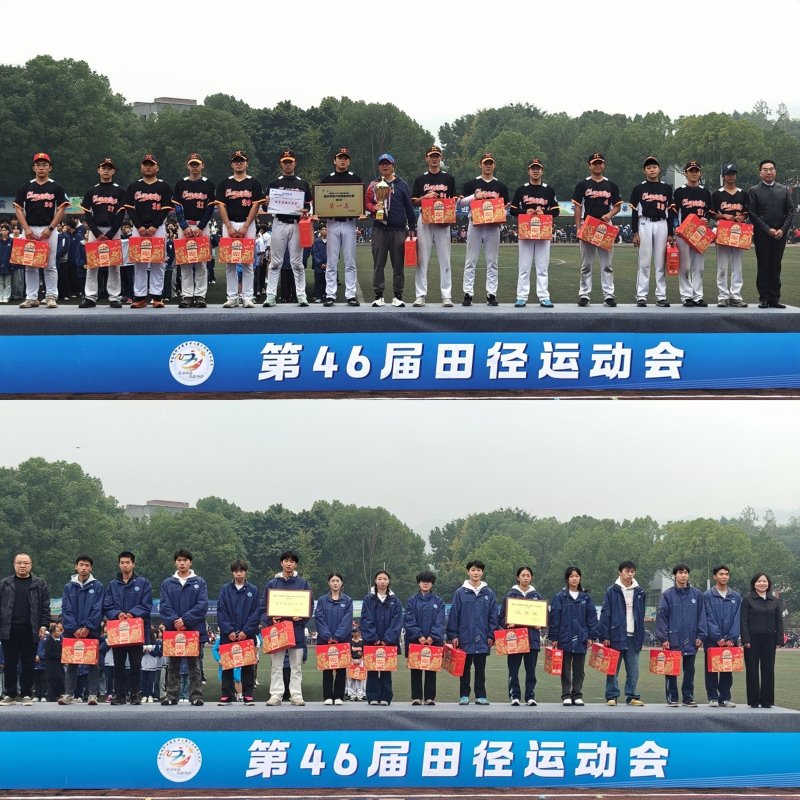 闭幕式上,15个优秀班级的广播操展示整齐划一,尽显集体凝聚力。表彰颁奖环节亮点纷呈:学校领导依次为在2025年重庆市青少年棒垒球比赛中勇夺第一名的校棒垒球队、在重庆市中等职业学校学生田径运动会获得女子组第三名的田径女队运动员,以及在九龙坡区级有关运动赛事中获得第三名的校足球队、校篮球队队员颁发奖牌、奖品。同时,本次运动会产生的11项个体奖项、21项专业部团体奖项、167项班级团体奖项也逐一揭晓。