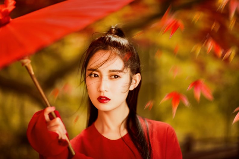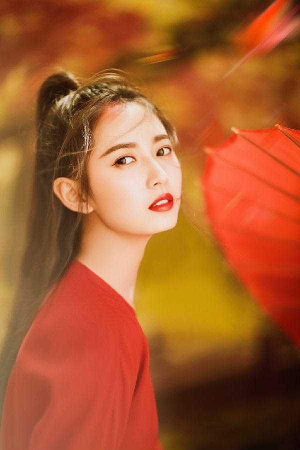 陈钰琪小姐姐的这组红色古装妆很英气十足啊~红唇、浓眉,与浓郁色调结合的特别好,简单的发型却十分古香古色。