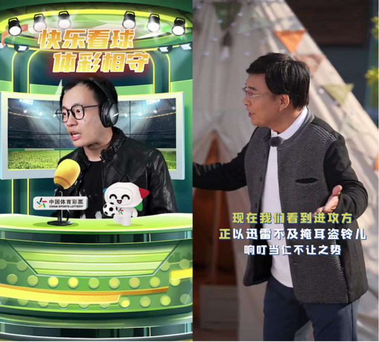 和明星进行足球解说合拍创作