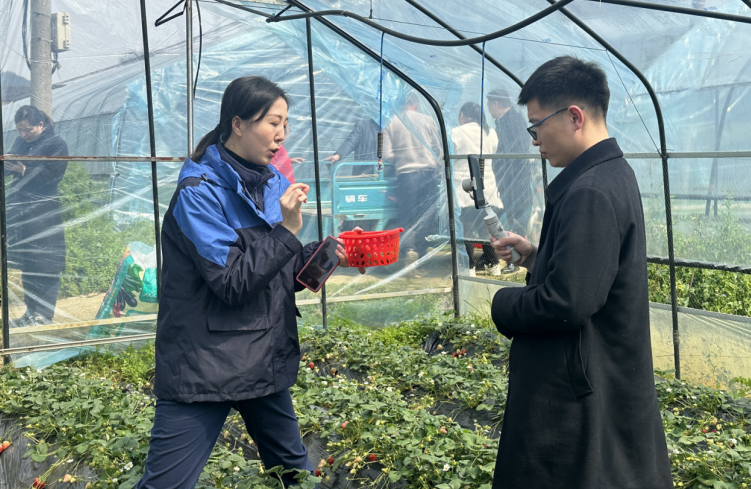 为积极响应乡村振兴战略,重庆渝北银座村镇银行立足当地、深耕“三农”,不断探索具有银座特色且行之有效的乡村振兴金融服务模式,通过创新金融科技、金融产品为地方农业赋能。2025年3月,重庆渝北银座村镇银行统景支行联合重庆市渝北区大盛镇商会,赴重庆市渝北区大盛镇云龟山草莓基地开展助农直播活动,助力农户增收,推动城乡消费联动与乡村产业振兴。