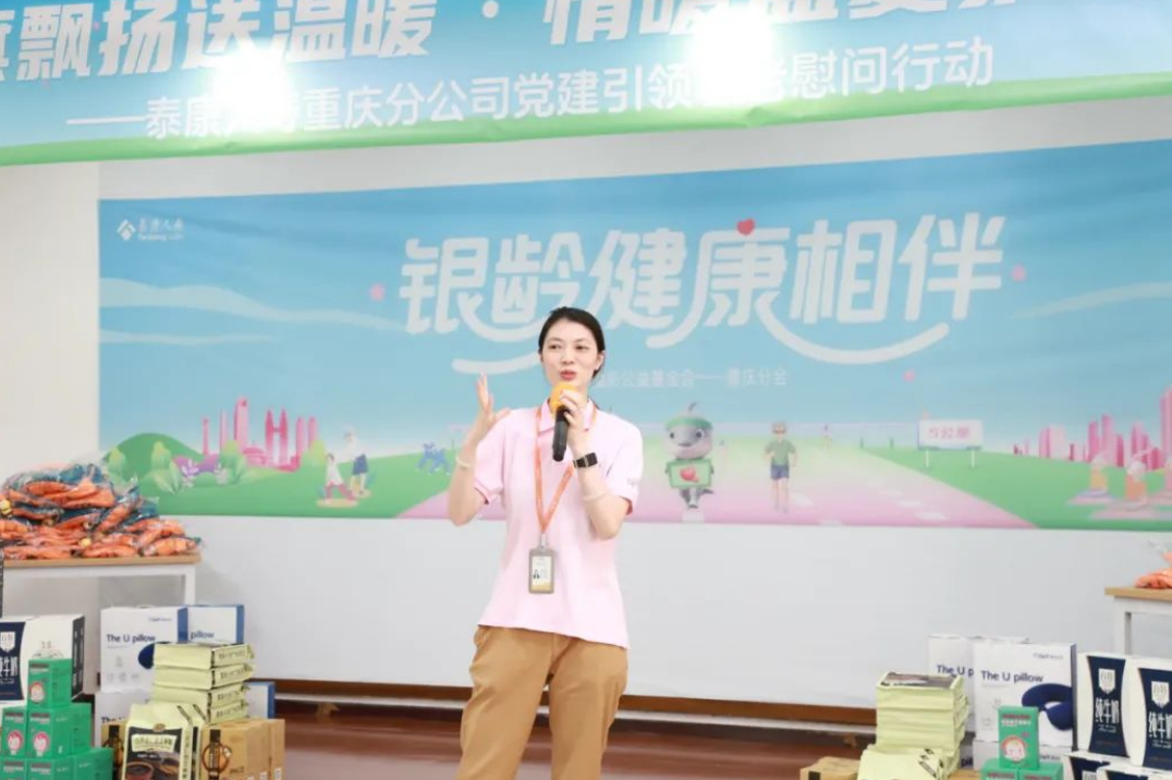 杨莉作活动致辞时阐释泰康的责任:“作为大民生工程核心骨干企业,泰康始终将‘关爱生命’作为价值观,以‘让人们更长寿、更健康’为使命。”她强调,公司立足重庆特色创新打造“活力重庆·健康促进”泰康医生App服务项目,通过数字化平台与健康生态的深度融合,赋能市民健康生活,市民可通过参与线上线下活动累积积分,贡献爱心积分,参与公益活动等。未来分公司将持续联动自有养老社区、康复医院等资源,与福利院共建长效关怀机制。
