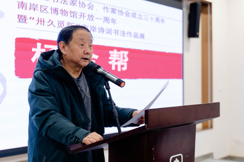 南岸区作协主席杨金帮在致辞中说道:“三十年,见证南岸文脉史蕴,作协诸君以诗文为舟,载渡南岸千年风雅,南岸区作协与书协、博物馆等同道共同织成南岸温暖的文化底色。”