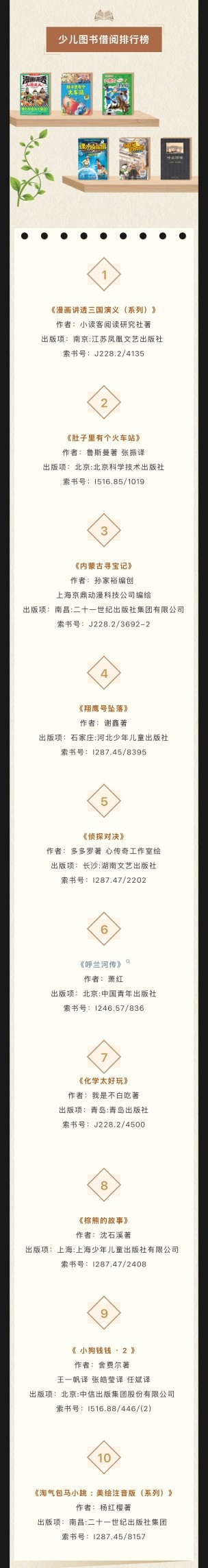 重庆图书馆2025年少儿图书借阅排行榜完整榜单。