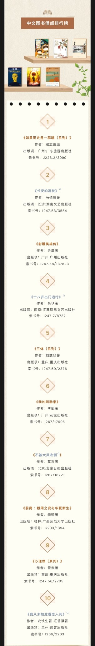 重庆图书馆2025年中文图书借阅排行榜前六书目。