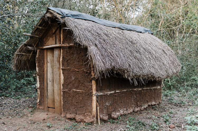 雨秋的房子算不上房子,一半已经坍塌,瓦砾间长出了青草。另一半也摇摇欲坠,靠几根木头斜顶着,如同一个病人前后左右支着五六根拐杖。一堵老墙布满烟灰,扭曲成一个球面,看上去只要客人一个喷嚏,气流就可能把它捅破,然后是整堵墙哗啦啦倒下来。小门里一团寂黑,外人需要很长一段时间,才能让瞳孔适应黑暗,看清黑暗中浮现出来的一切,比方说锅里的冷粥,比方说紧靠着床头的锅灶,还有潮湿墙角里的两个瓦罐。抬头看看,一条条瓦缝宽得可以见天。可以想象,这样的屋顶一逢下雨就是筛子装水,要是再碰上大风,房子完全可能一瞬间垮塌,把雨秋一家活埋,并且久久不为外人所知——这里太偏了,太远了,平时除了野猪和红毛狗的光临,除了叽叽喳喳的鸟音,几乎不会有陌生脚步声出现。