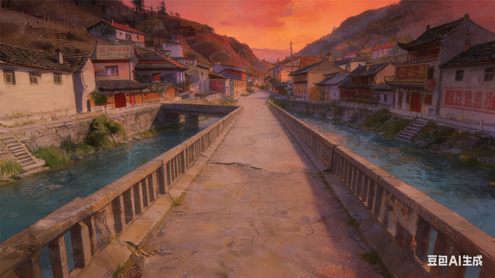 桥应该是石拱桥,或者木桥,但它是水泥桥,已经破坏了护栏。站在桥上可以看到这个镇子一分两半,一半在东边的山坡,一半在西边的山坡。一个小镇分为两半,中间是一条不大的河,所以镇名叫小河吧。