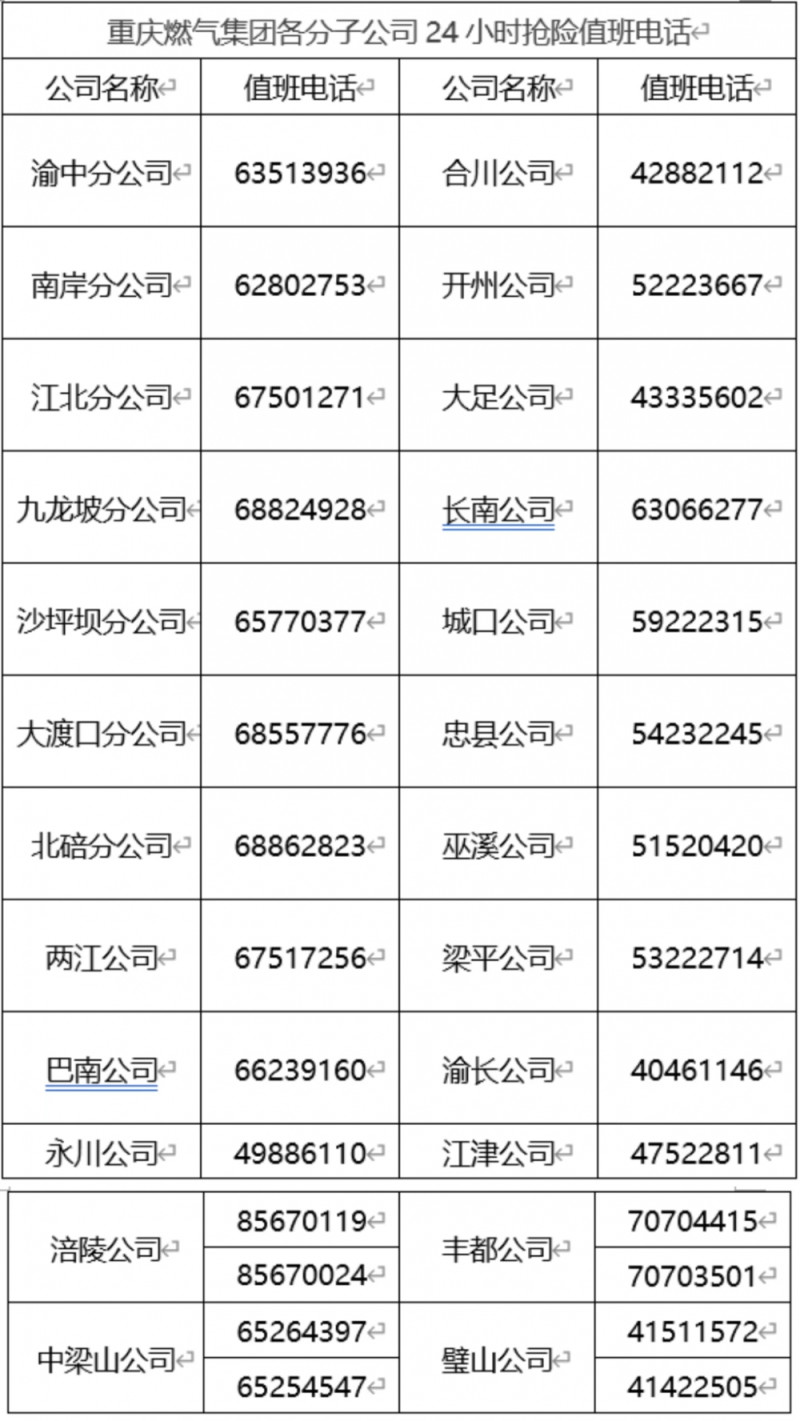 重庆燃气集团相关负责人表示,系统维护期间,抢险维修服务照常进行。在此期间给您带来的不便深表歉意,请您合理安排时间,办理相关燃气业务。如有疑问,请致电重庆燃气客服热线966777或所属燃气经营管理单位24小时抢险值班电话。