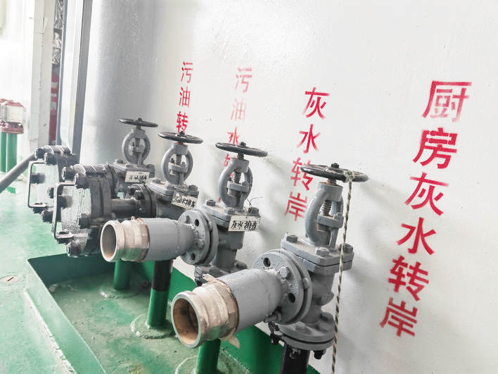 转岸阀将船舶运行产生的污染物转移至趸船存储柜分类存储