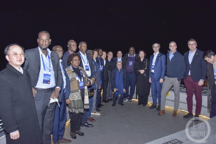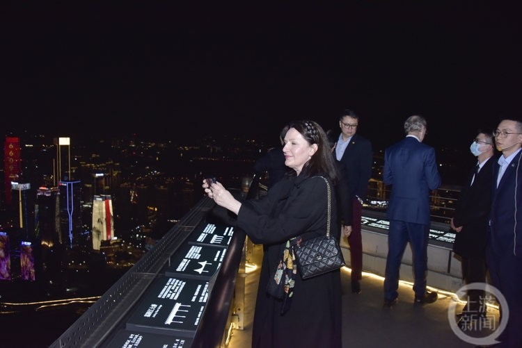 20日晚8点半左右,驻华使节登上WFC重庆之巅,感受山水和城市融为一体的山城活力,共同欣赏美轮美奂的山城夜景,并为山水之都、美丽重庆点赞,纷纷合影留念。