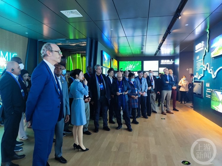 “李子坝轨道穿楼有噪音吗?”“乘坐皇冠大扶梯需要多长时间?”……20日下午2时左右,驻华使节来到重庆市规划展览馆,沉浸式感受魔幻重庆的魅力,李子坝轨道穿楼、皇冠大扶梯等重庆立体交通吸引驻华使节的目光,大呼“Amazing!”
