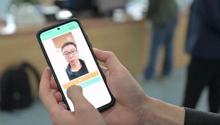 △重庆图书馆网络技术中心主任严轩展示人脸录入过程