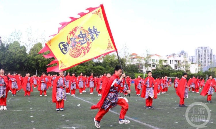 饱含感情的配乐诗朗诵、英姿飒爽的武术表演、独具特色的川剧变脸……近日,重庆市为明学校第十七届校园文化节开幕,全校4000余名学生用舞蹈、戏曲、武术、朗诵等表演形式,展现出他们的多才多艺及创新创意。