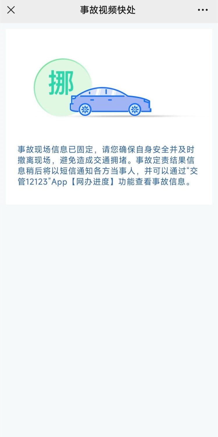 轻微交通事故线上视频快处不同于以往轻微交通事故在线快处方式,当事人发生轻微交通事故后,可以直接通过“交管12123”APP中“事故视频快处”模块进行报警,民警通过系统后台直接采取视频与当事人进行线上操作,引导当事人完成事故信息的采集、固证等工作,当事人撤离现场后系统将远程推送责任认定,实现轻微交通事故快速撤除现场,减少交通拥堵的效果。