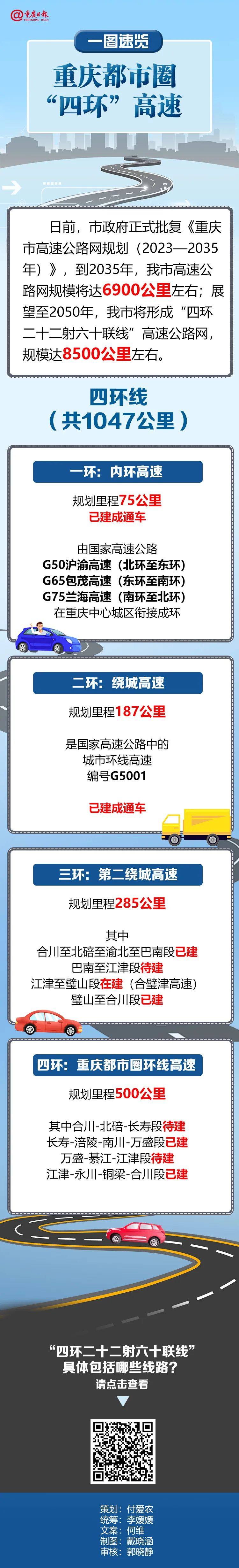 根据规划,到2035年,重庆基本形成“开放互联、能力充分、覆盖全面、智慧绿色、安全可靠”的高速公路网络,实现“对外通道多向开放,成渝双城一体融合、主城极核多路辐射、区县全面高速直连、重要节点全面覆盖、路网衔接高效顺畅”,有力支撑现代化综合立体交通网构建、成渝地区双城经济圈建设、区域协调发展、交通强市建设等重大战略实施。