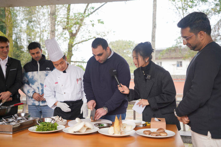 素食的每一道菜,能让人吃出大自然的馈赠感,原汁原味,美味无比!12月5日,由重庆市委宣传部(市政府新闻办)、重庆市教委、重庆市商务委、重庆市文化旅游委、重庆市政府外办主办的感知重庆·渝味传五洲·梁平专场活动开启,来自巴基斯坦、约旦的外国留学生们走进了重庆梁平双桂素食体验中心,一起打卡品尝双桂素食宴,还跟着中国大厨学做了双桂素食。