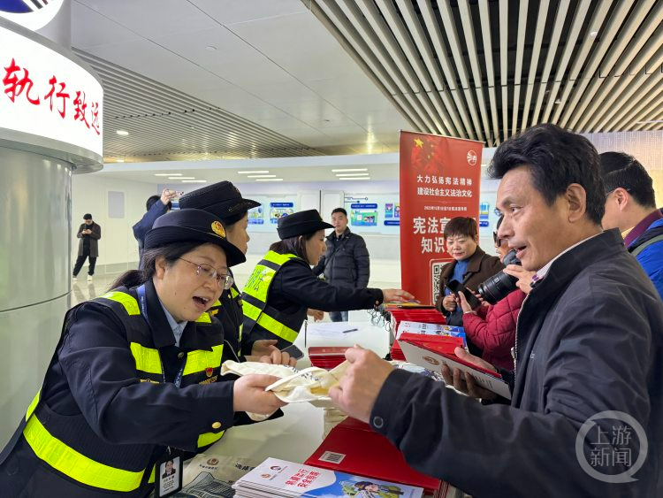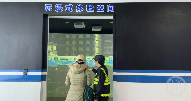 上游新闻记者了解到,为了引导乘客安全出行,共护轨道运营安全,轨道交通支队在北广场负三楼旅客出站口打造了“法治轨道 你我同行”法治宣传基地。基地总面积约700㎡,包括法治中国、守护轨道、安全出行、执法为民等板块,实现警示、宣传、教育、执法服务4大功能有机融合,现已基本实行常态化开放。