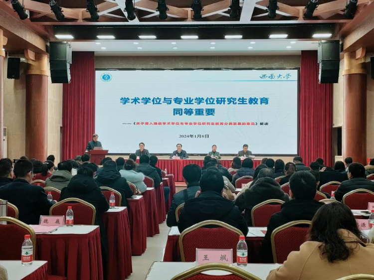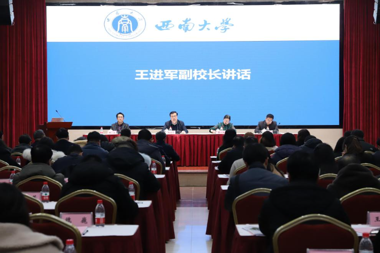为落实立德树人根本任务,持续推动研究生教育高质量发展,1月8日下午,西南大学在东方红会议厅召开2023年研究生教育工作总结会。西南大学党委常委、副校长王进军,研究生院党委研究生工作部相关负责人,各二级培养单位分管研究生思想政治教育工作负责人、分管研究生教育教学工作负责人,研究生教指委委员、教学秘书、辅导员代表参加会议。会议由研究生院院长邱江主持。