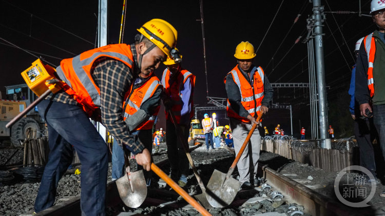 3月30日23点30分,来自中铁十一局、成都局集团公司重庆工务段、重庆供电段等多家单位,按照既定方案,拆除线路、起道、拨道、捣固、接触网拆除、倒锚、回流线架设、悬挂调整、绝缘试验等工序衔接自如、一气呵成。经过500余名施工人员、30余台大型机械近170分钟的紧张施工,顺利完成拆除道岔1组、拆除线路0.35公里、线路拨移0.26公里,新铺道岔1组、线路2.6公里。