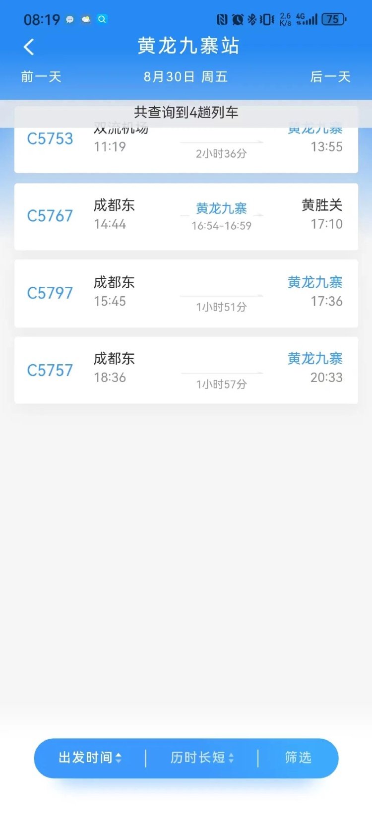 根据车次信息显示,成都至黄龙九寨站全程约2小时,部分车次时间压缩至2小时内,这无疑将方便市民游客到九寨沟、黄龙等地旅游出行。