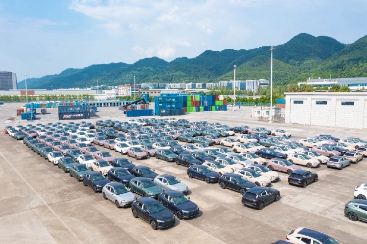 2024年8月15日,在位于沙坪坝区的团结村中心站,重庆造新能源汽车正在装箱,即将搭乘国际班列销往海外。通讯员 郭晋 摄