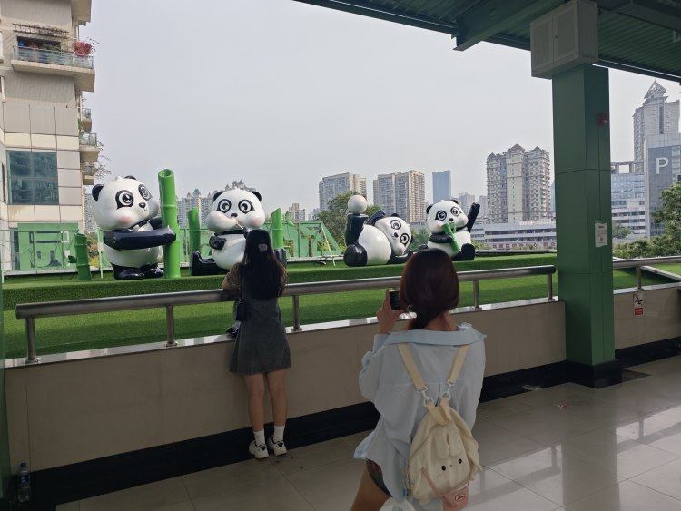 原来,与重庆动物园相邻的2号线动物园站进行了升级改造,以“熊猫为你拍照”为创意核心进行设计,成为重庆轨道交通首座站外站内都有熊猫主题元素的高架车站。动物园站共计2000平方米,从站厅到站台,从售票机、闸机门到立柱、楼梯,随处可见的泡泡和熊猫元素相映成趣,为旅途增添了几分童趣与惊喜。