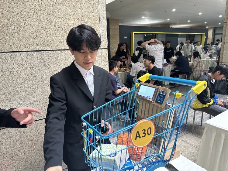 贺怡忻介绍,这台购物车设计灵感来源于服装店里的自助结账的柜台,只需要把衣物放上去便可以通过感应实现计价,她和团队研究后认为,这样的功能也可以应用在购物车上,不但可以大大方便市民日常购物,还可以为超市、商场节约人力。