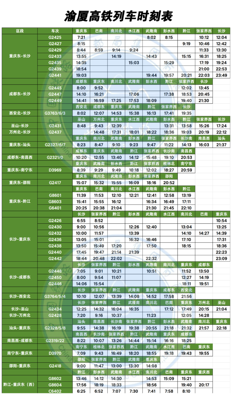 时刻表(以上时刻仅供参考,详情以12306⽹站或⻋站公告为准)