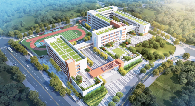 项目建设内容包括教学楼及车库、报告厅、操场、游泳馆等。预计9月投入使用。