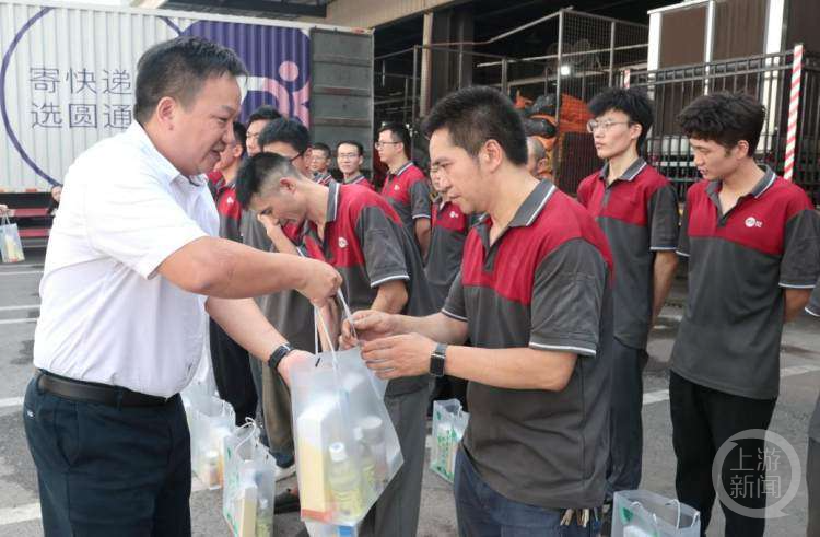 给快递员送去“清凉礼包”。