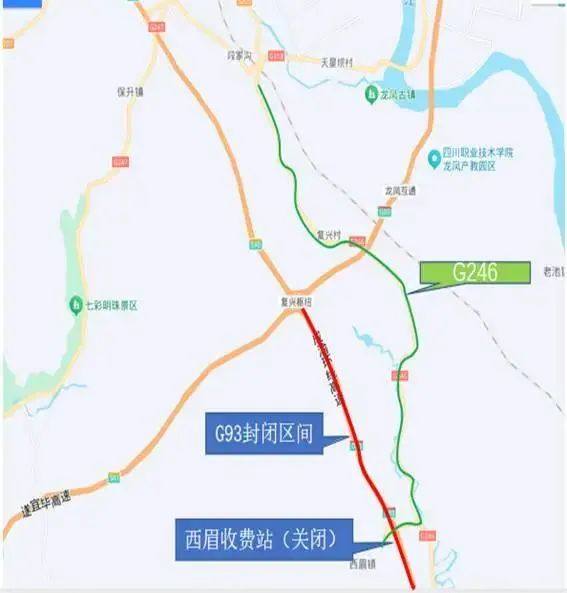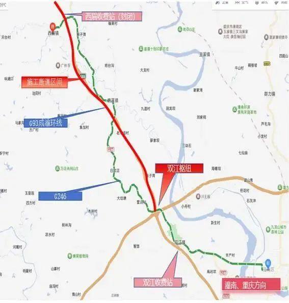 遂宁城区、潼南城区与西眉往来车辆经G246国道绕行。