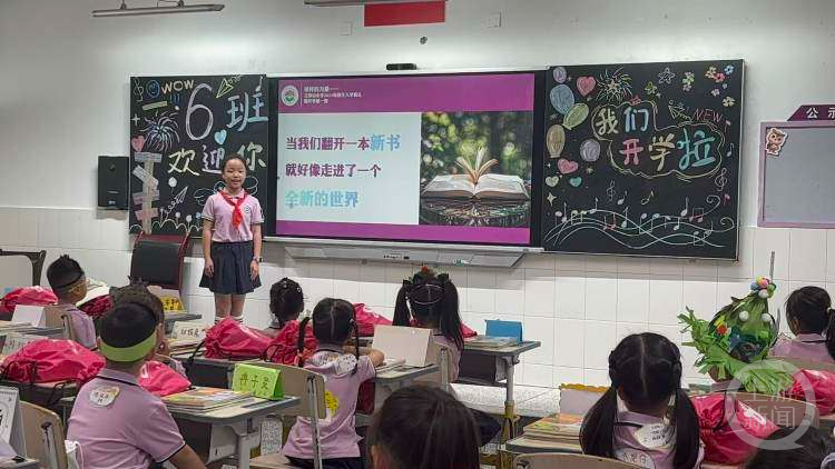 “大家好,我今天分享的是‘读万卷书行万里路’的意义。”四年级9班的周佳怡和学弟学妹们分享了自己阅读的体会。她说,当自己翻开一本新书,就好像走进了一个全新的世界,“阅读能让我们学到很多知识和道理。比如,读《安徒生童话》,我深深感受到了善良和勇敢的强大力量。”
