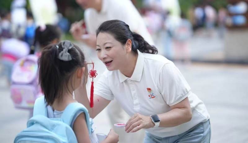“来,宝贝别紧张,轻轻低下头。”随着温柔的提醒,一点鲜红的朱砂稳稳地印在孩子们的眉心。这一点朱砂,不仅是传统“开蒙启智”的美好寓意,更是学校对孩子们的期许,愿孩子们从此眼明心亮,在知识的海洋里勇敢探索,开启充满智慧的校园生活。