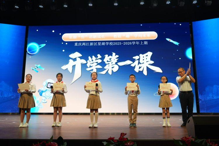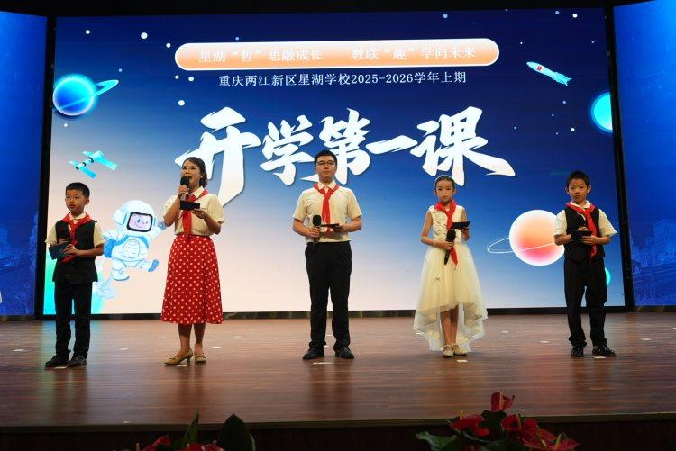 9月1日,重庆两江新区星湖学校以一场别开生面的“开学第一课”,为全校师生开启了新学期的大门。本次活动以“星湖‘哲’思融成长,教联‘趣’学向未来”为主题,深度融合国家航天成就、人工智能发展与儿童哲学教育特色,生动展现了新时代基础教育改革与创新的探索实践。