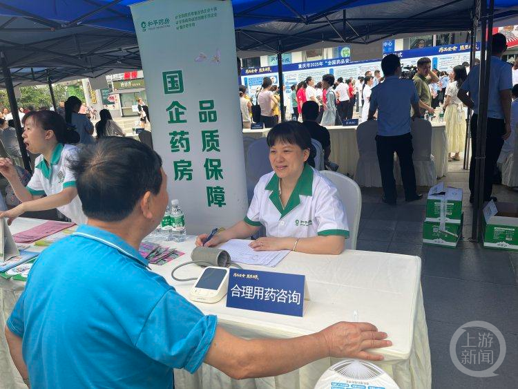 活动现场,市民正在向和平药房工作人员咨询合理用药注意事项。