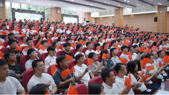 9月3日上午,纪念中国人民抗日战争暨世界反法西斯战争胜利80周年大会在北京天安门广场隆重举行,重庆大学师生在民主湖报告厅观看直播。上游新闻记者 宋剑 周本帅