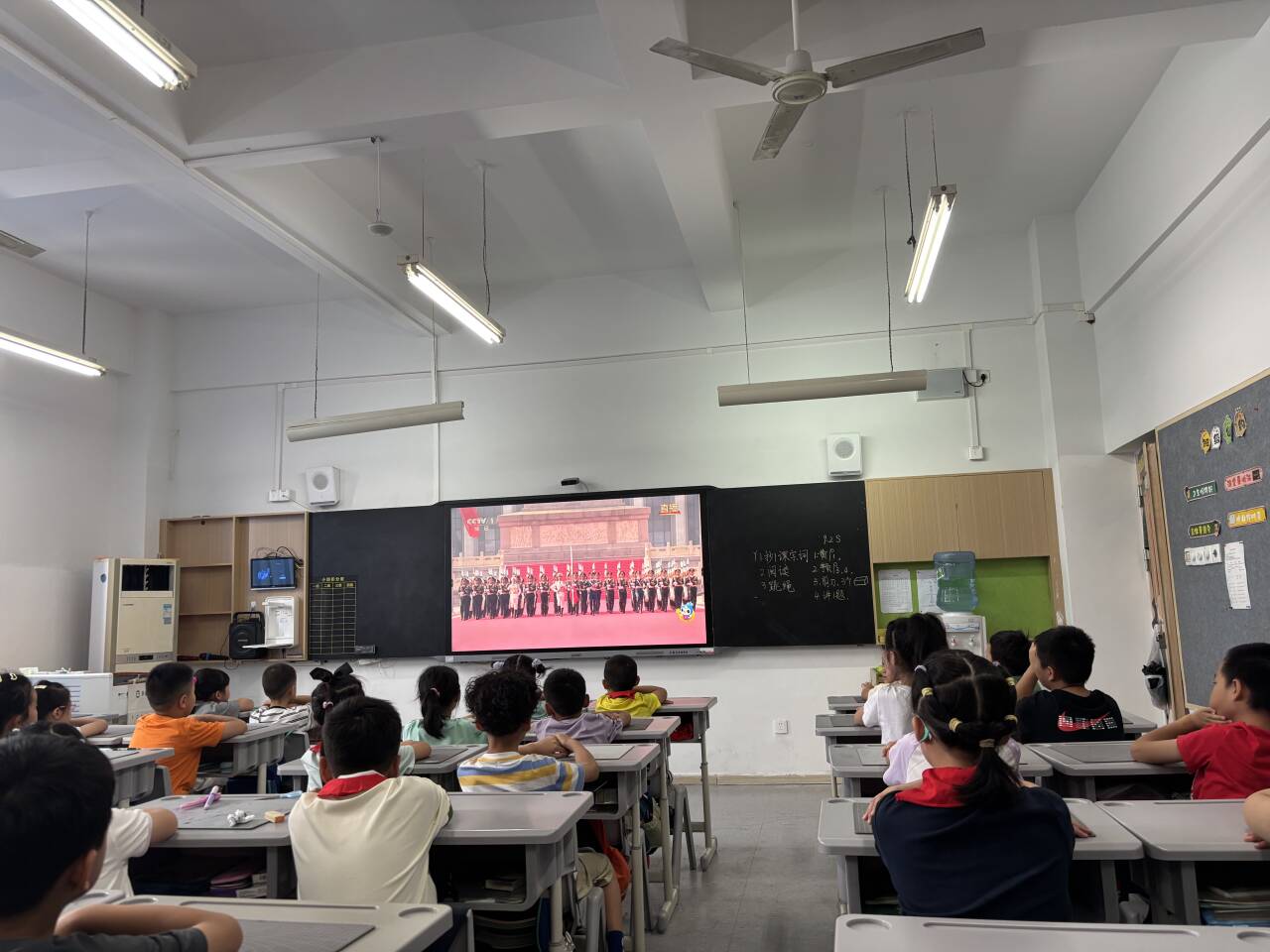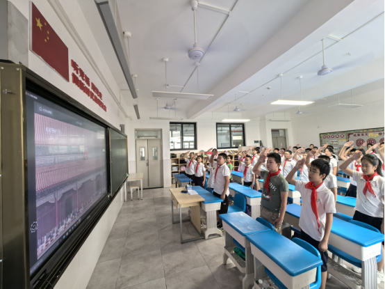 9月3日上午,纪念中国人民抗日战争暨世界反法西斯战争胜利80周年大会正式开始,九龙坡区谢家湾金茂小学六年级5班的同学们在教室观看直播。上游新闻记者 秦健 甘侠义 实习生 牛祉祯