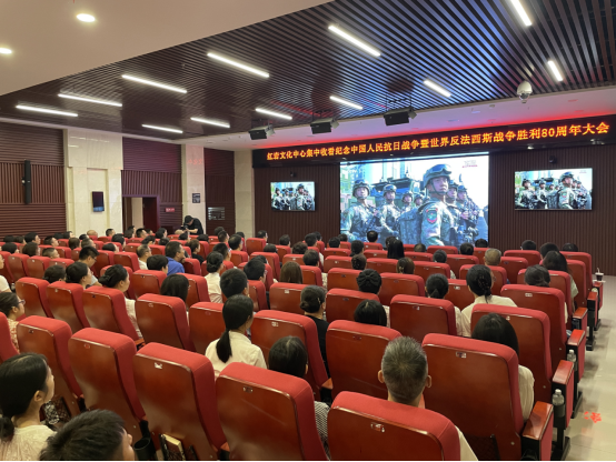 9月3日上午,纪念中国人民抗日战争暨世界反法西斯战争胜利80周年大会举行,红岩文化中心组织干部职工集中收看大阅兵电视直播。上游新闻记者 郭发祥