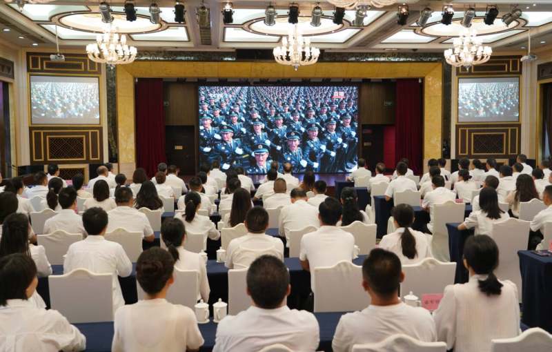 9月3日,西南铝组织职工观看纪念中国人民抗日战争暨世界反法西斯战争胜利80周年大会直播。这是其中一个观看会场。 上游新闻记者 严薇 通讯员 彭英 李影