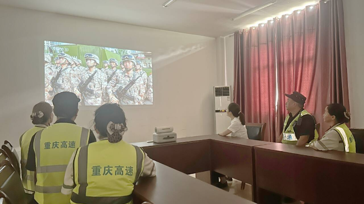 9月3日,重庆高速集团南方营运分公司界石管理中心巴南服务区工作人员正在观看纪念中国人民抗日战争暨世界反法西斯战争胜利80周年大会直播。上游新闻记者 甘侠义 摄