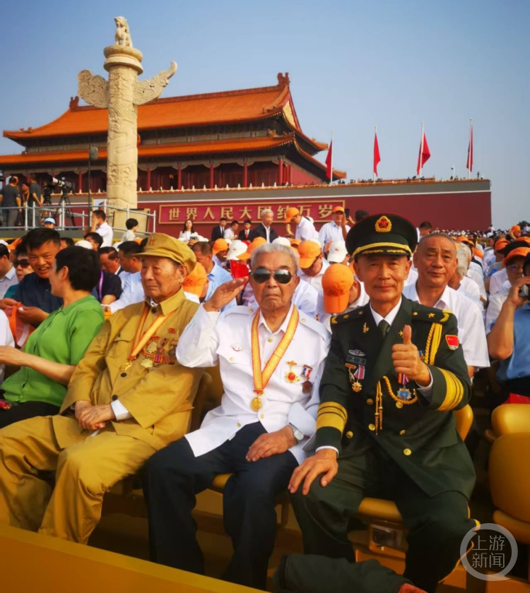 老兵洪代彬(白衣)现场观礼。受访者供图
