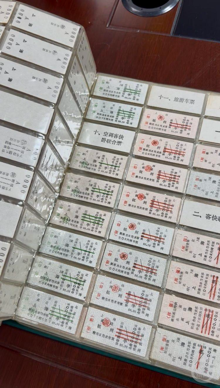 陈晓英展示自己的旅客车票集。
