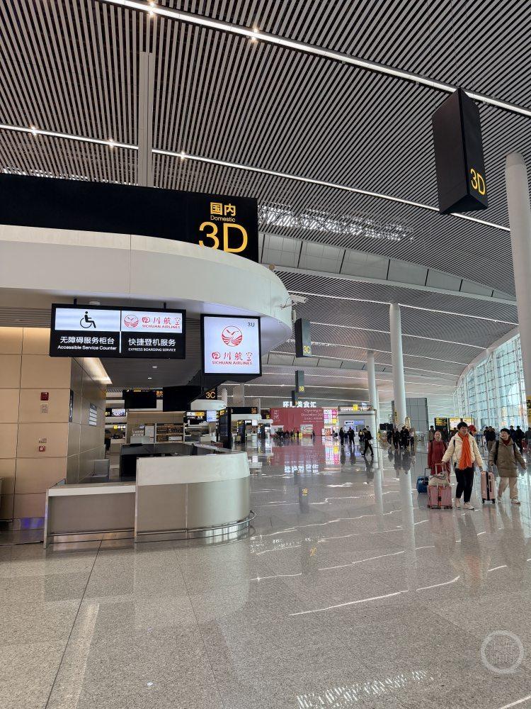 四川航空将在3D值机岛一侧办理乘机手续。