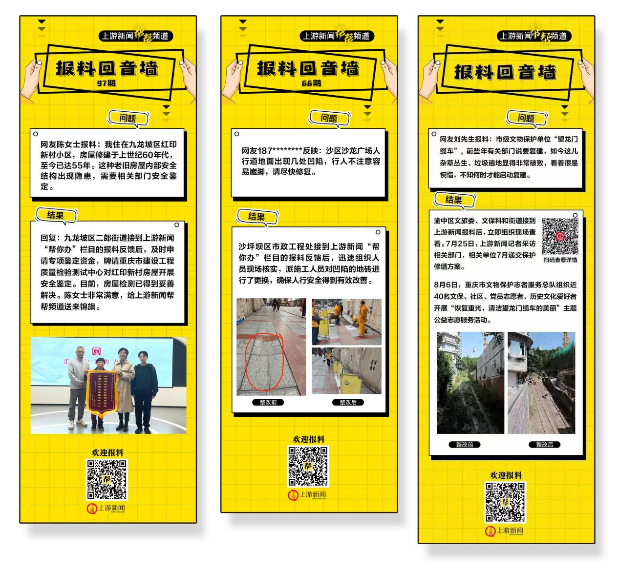 百期耕耘,见证民生温度;媒体赋能,助力基层治理。截至本月,上游新闻于2024年4月创新开办的“帮帮”频道“报料回音墙”栏目迎来100期里程碑,累计推动解决超1200件民生诉求,构建起“媒体+政务+服务”的现代城市治理新范式。