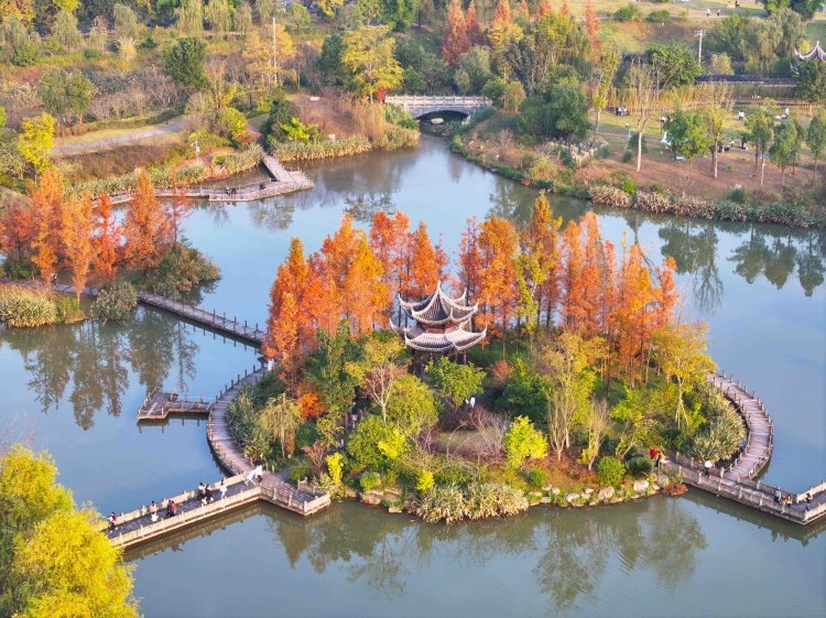 梁平区双桂湖国家湿地公园层林尽染,色彩斑斓。(资料图片)特约摄影 刘辉