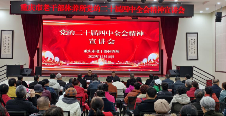 红岩青松微信公众号消息,为深入学习宣传贯彻党的二十届四中全会精神,推动党中央决策部署落地落实、见行见效,12月18日,市干休所特邀重庆市人民政府发展研究中心、重庆社科院产业经济研究所所长卢向虎研究员来所作专题宣讲,解读党的二十届四中全会精神。全体干部职工、离退休老同志和老年学员近百人参加。