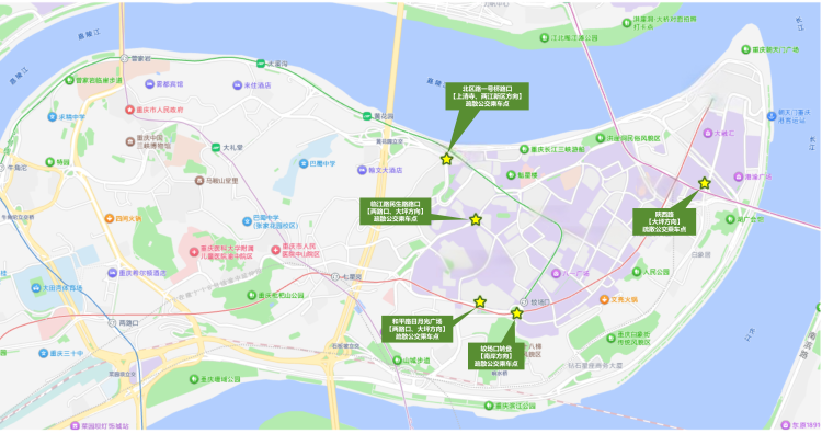 ④北区路一号桥路口:前往上清寺、两江新区(观音桥)方向乘车点;
