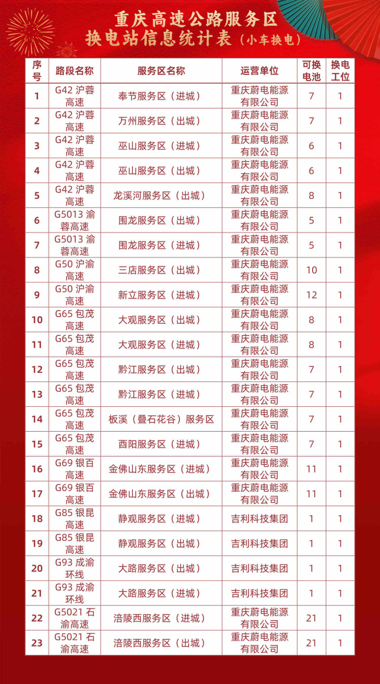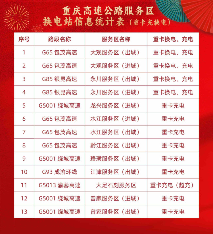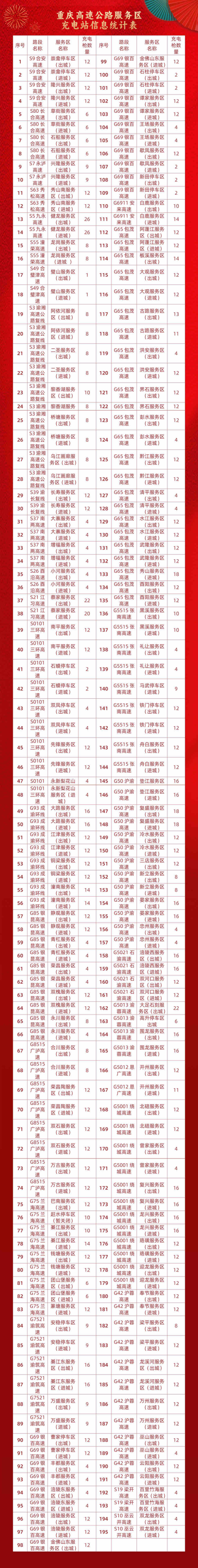目前,重庆市全路网服务区已实现充电基础设施全覆盖,已建成投运充电桩1951个,充电车位2140个。其中,有超充站的服务区171个,共有超充桩514个、超充枪514把。高峰时段充电建议:为减少排队等待,建议将充电电量设置为90%即可结束充电。