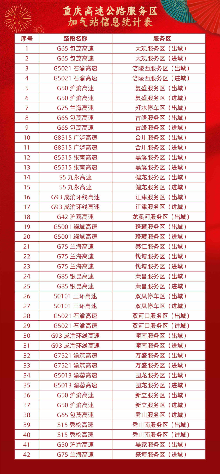 预计元旦假期车流量较大的收费站:G5013科学城、S7高新南、G93高新、G5021南岸、G65巴南、G93沙坪坝、双福北、G50江北、G75北碚、开州。