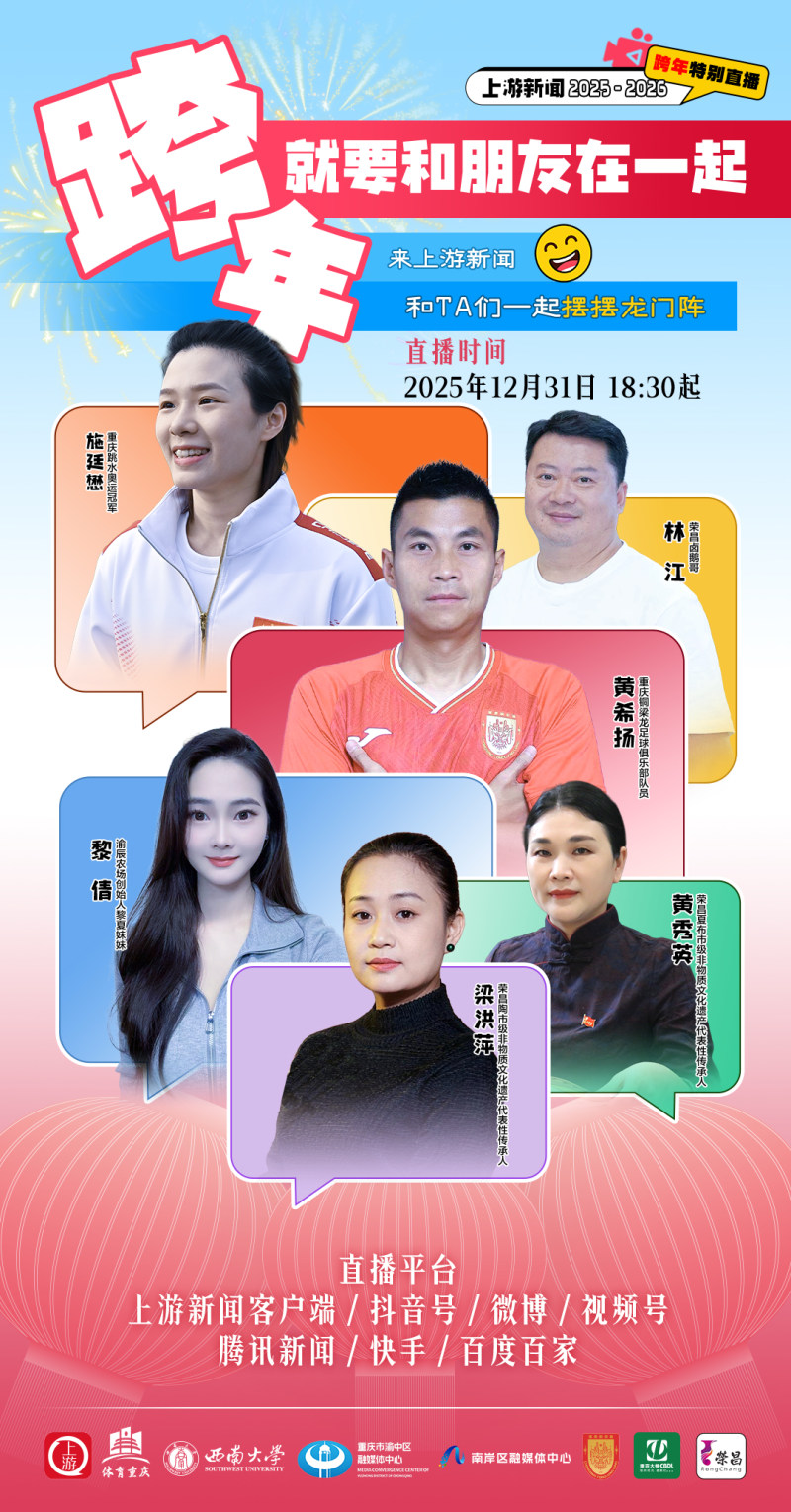 在这个辞旧迎新的时刻,上游新闻2025-2026跨年特别直播即将暖心上线!我们把直播间打造成一间“城市客厅”,邀请几位来自不同领域的老朋友,陪你聊聊这一年的故事。